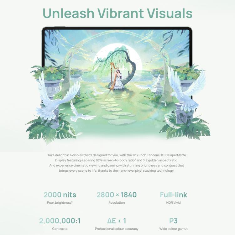 3. Display: 12.2-inch double layer OLED screen, 144Hz refresh rate, 2800x1840 pixels, 274 PPI, screen ratio 3:2, 92% screen-to-body ratio, 1.07 billion colors, P3 wide color gamut