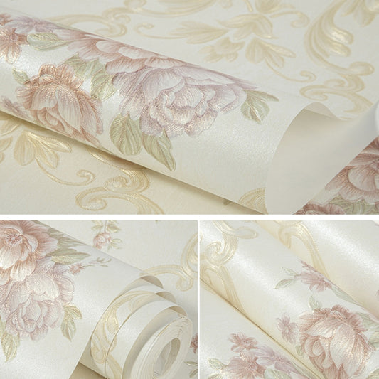 0.53 x 3m 3D Pastoral Style Wallpaper Bedroom Living Room Non-Woven Fabric Self-Adhesive Wall Sticker(203071 Off-white)