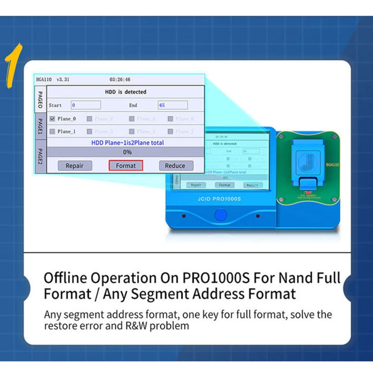 4. Support BGA110 full nand format / or any segment address format, support one key for nand repair