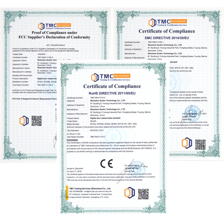 SF550 4.3 inch Screen 1.0MP Security Digital Door Viewer with 12 Polyphonic Music, Support PIR Motion Detection & Infrared Night Vision & 145 Degrees Wide Angle & TF Card (Black)
