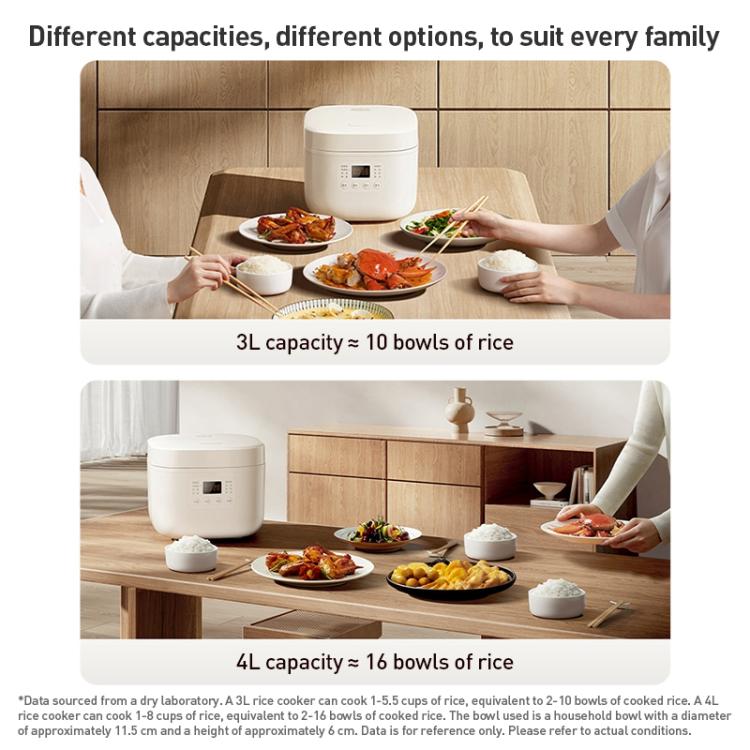 2. 3L rice cooker can make up to 10 bowls of rice, 4L rice cooker can make up to 16 bowls of rice (11.5cm in diameter and 6cm in height household bowl)