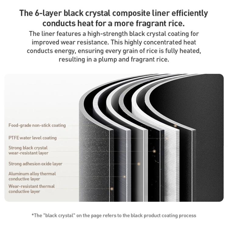 3. 6-layer black crystal composite liner for efficient heat conduction, making rice more fragrant.