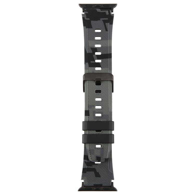 For Apple Watch 38 / 40 / 41 / S10 42mm xDfind Black Connector Camouflage Print Silicone Watch Band(Grey)