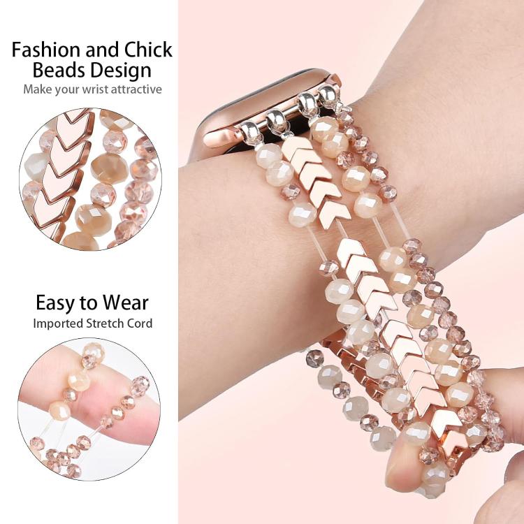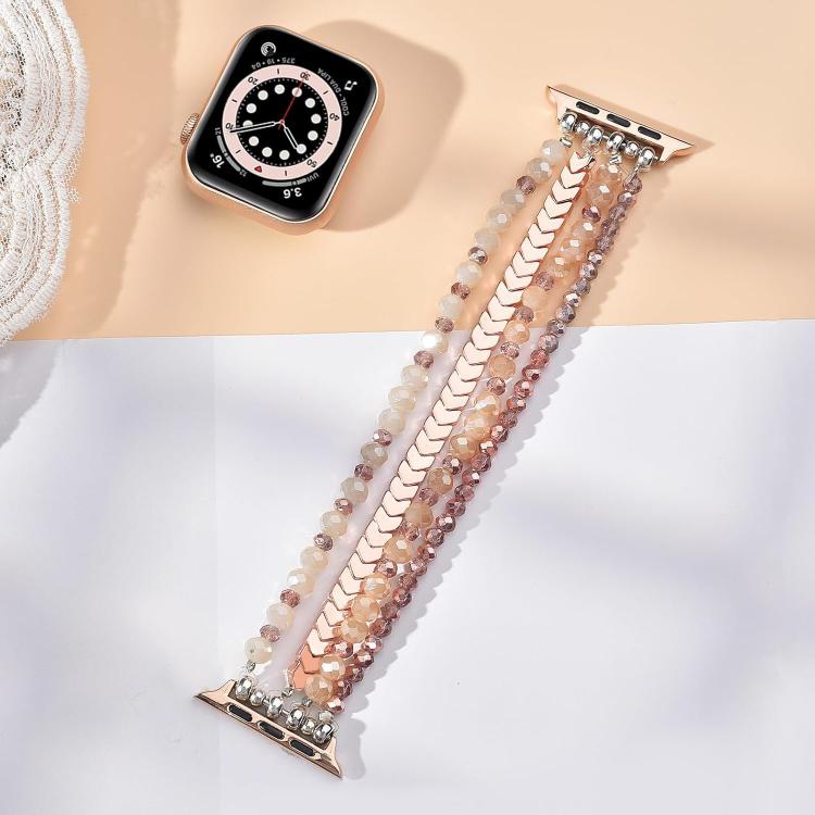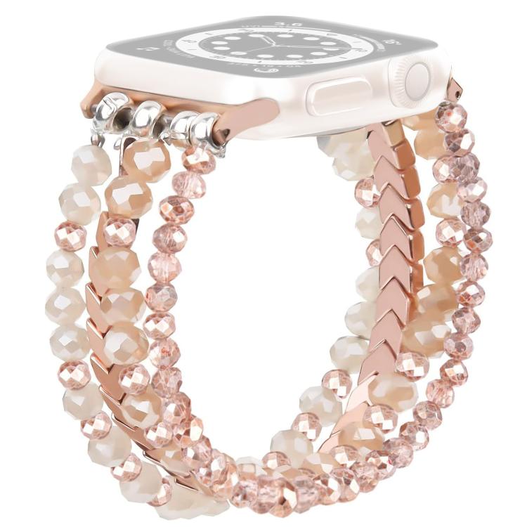 For Apple Watch 42 / 44 / 45 / 46 / 49mm xDfind Arrow Crystal Beaded Metal Watch Band(Rose Gold)