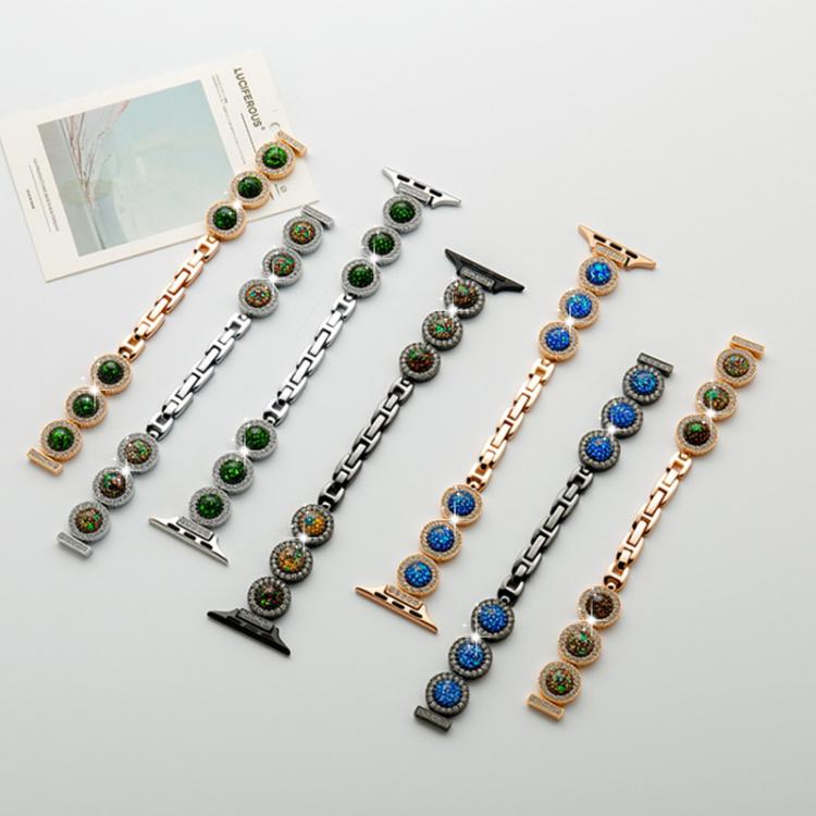 For Apple Watch 42 / 44 / 45 / 46 / 49mm xDfind Sparkling Diamond Jewelry Metal Watch Band(Champagne Blue Diamond)