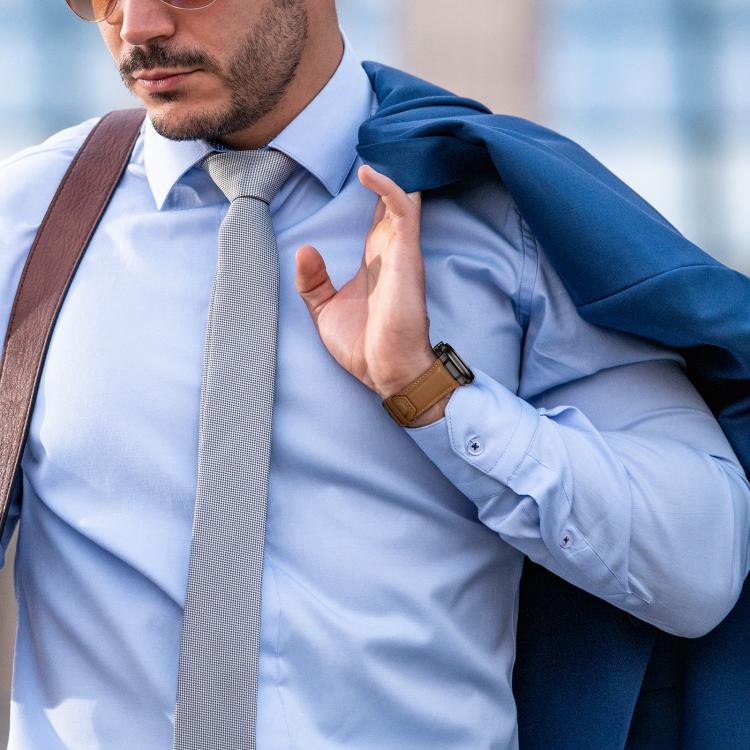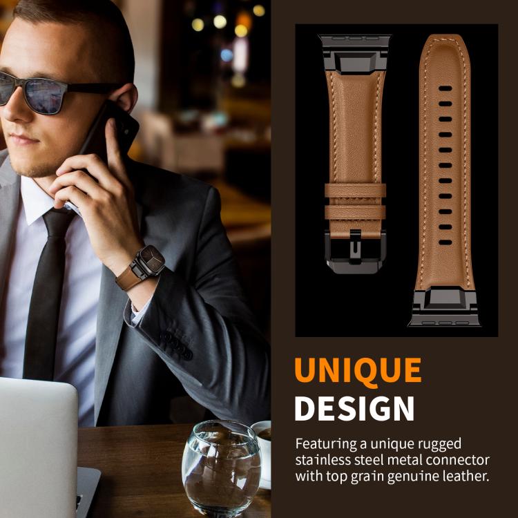 For Apple Watch 46mm / 49mm / 45mm / 44mm Armour-style Leather Watch Band(Brown Nappa Leather Black Buckle)