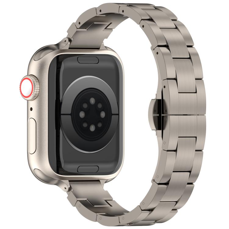For Apple Watch 46mm / 49mm / 45mm / 44mm Slim Waist Three-bead Butterfly Buckle Titanium Alloy Watch Band(Titanium)