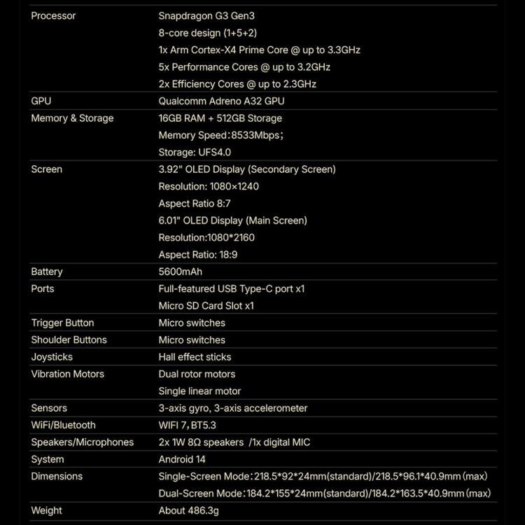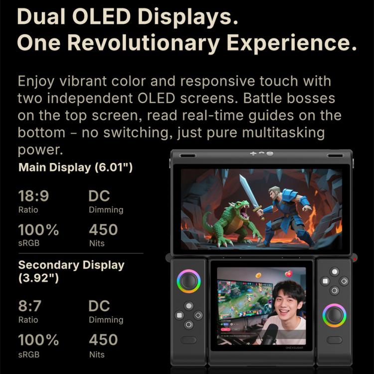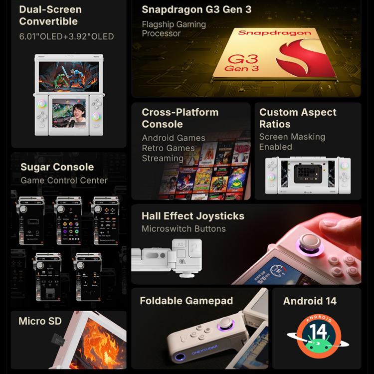 ONE-NETBOOK Sugar 1 Dual Screen Handheld Game Console, 16GB+512GB, Android 14 Snapdragon G3 Gen3(Black)