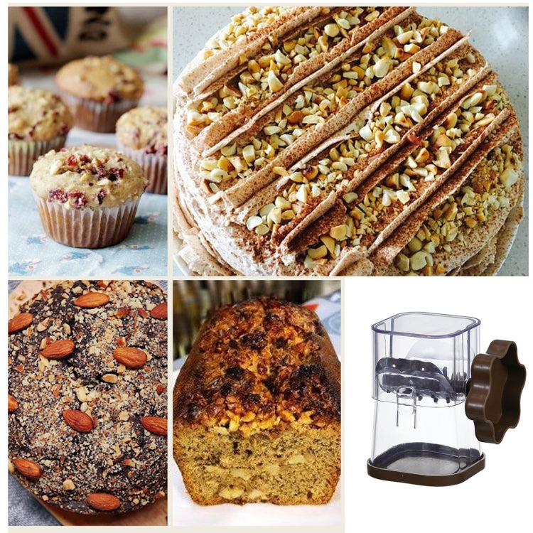 3. Two ways to use: take off the lid and sprinkle the nuts directly on the pastry, or put the lid on and turn the handle to grind
