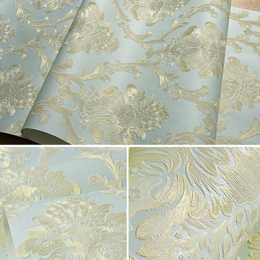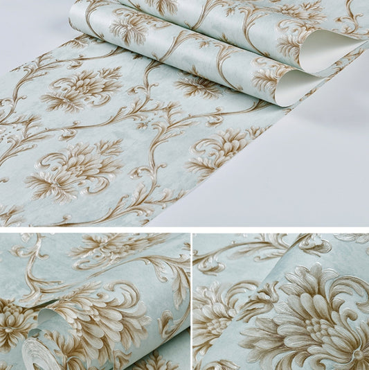 Bedroom Living Room Classic Damascus 3D Precision Pressed Non-Woven Fabric Self-Adhesive Wallpaper, Specification: 0.53 x 3 Meters(JA204 Blue)
