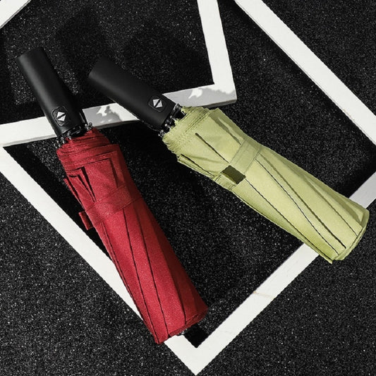 Extra Large Reinforced 12 Bone Automatic Double Folding Rain And Sunny Dual-use Umbrella Personality And Creativity(Matcha green)
