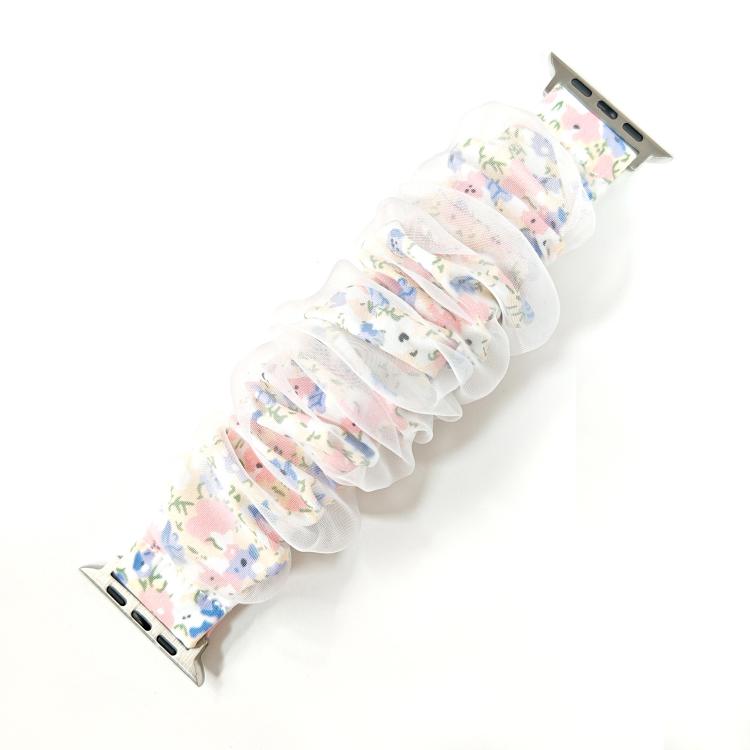 For Apple Watch 38 / 40 / 41 / S10 42mm xDfind Polyester Hybrid Organza Double Layer Watch Band(Purple Flower)