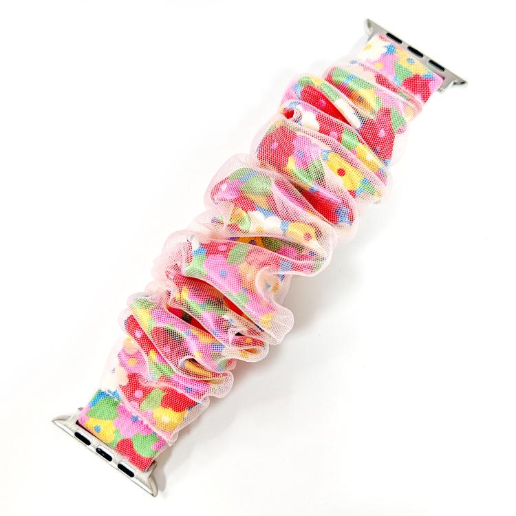 For Apple Watch 38 / 40 / 41 / S10 42mm xDfind Polyester Hybrid Organza Double Layer Watch Band(Red Flower)