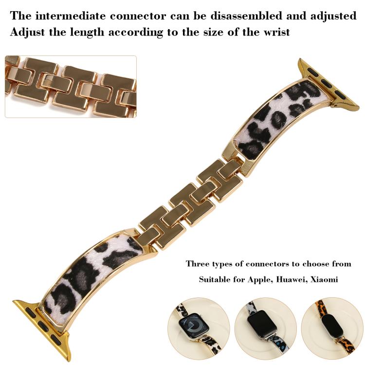 For Apple Watch 42mm / 41mm / 40mm / 38mm Leopard Print Bracelet Alloy Watch Band(Black)