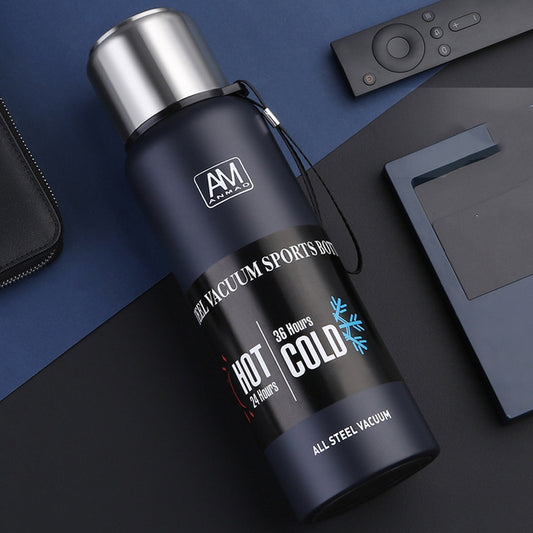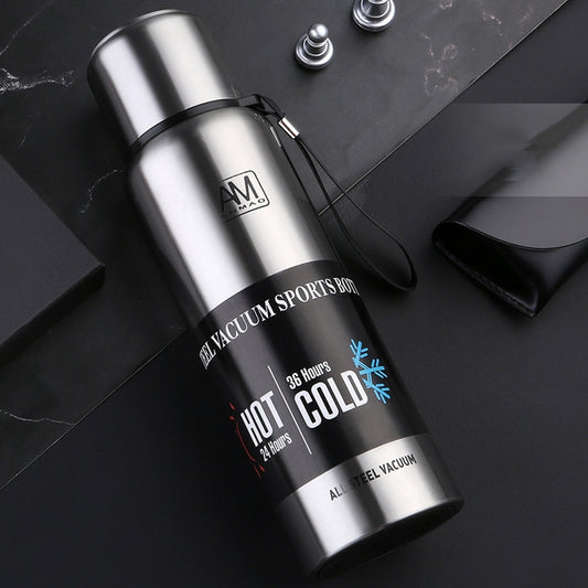 304 Vacuum Stainless Steel Vacuum Flask Double-Layer Large-Capacity Outdoor Water Bottle Mountaineering Sports Bottle, Capacity: 750ml(Steel Color)