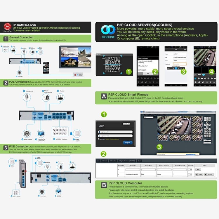 5. Support P2P mobile phone monitoring (compatible Iphone / Android)