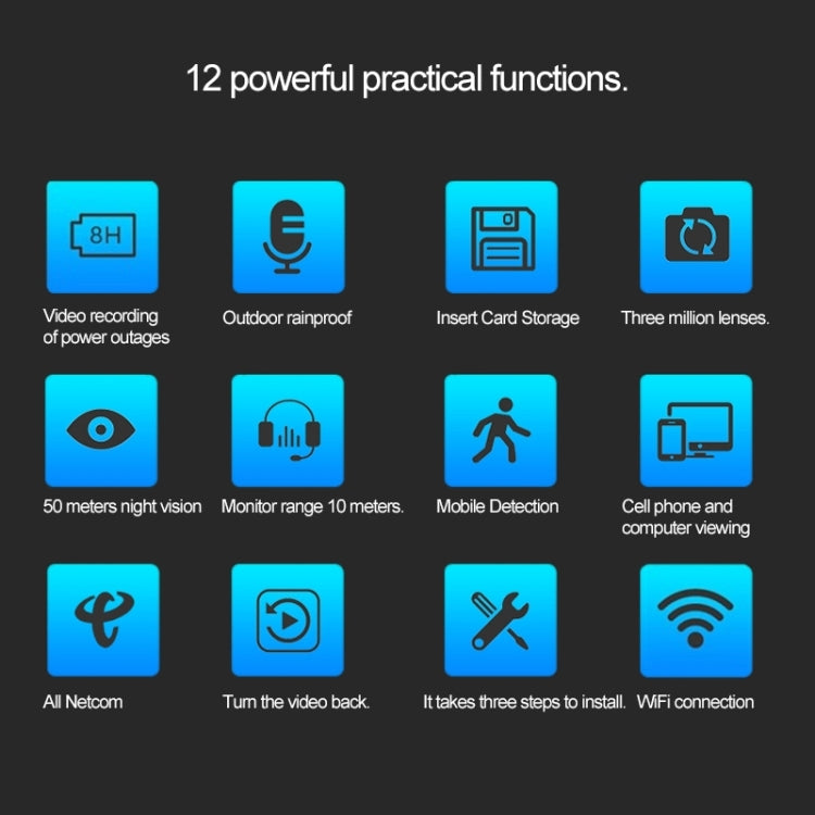 3. TF card storage video, long storage time, 64GB memory card can store 720 hours a month of video.