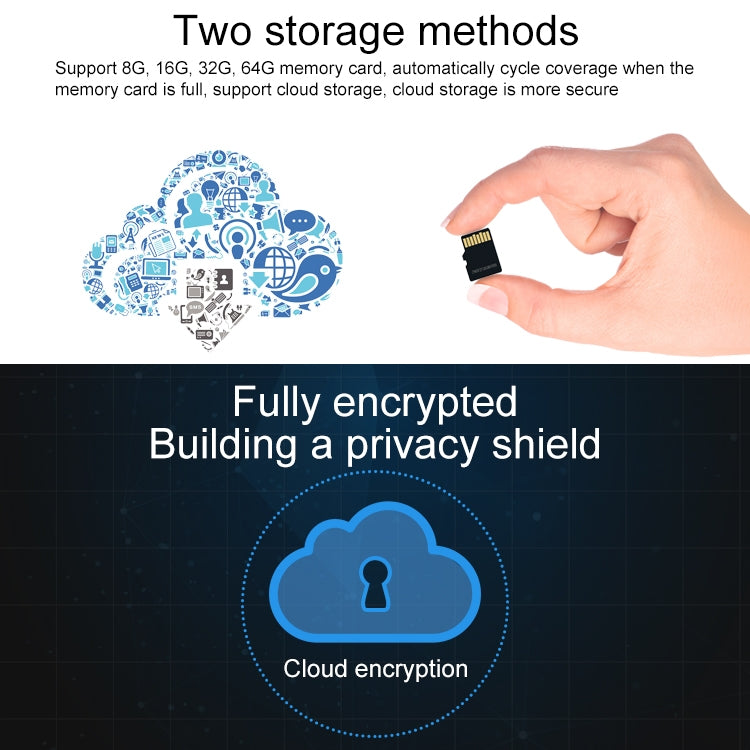 6. Support two methods: memory card storage and cloud storage