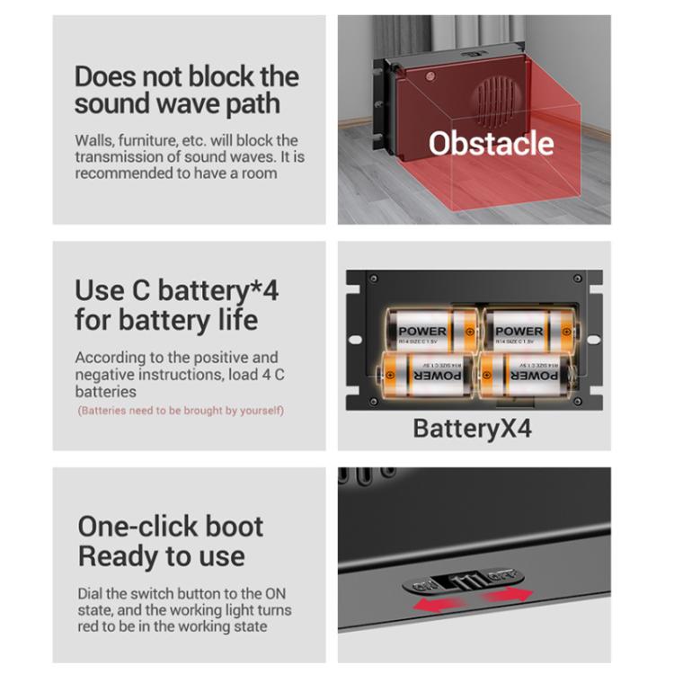 3. Battery-Powered Operation: Requires 4× R14 batteries (not included) for flexible placement without relying on power outlets.
