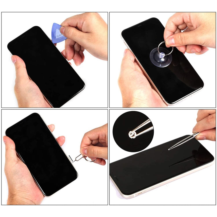 1. 36 in 1 professional electronic repair tool kit includes 26 screwdriver heads, 1 driver handle, 1 tweezers, 1 Metal double-ended pry bar, 3 Plastic double-ended pry bar, 3 Ultra-thin triangle picks and a suction cup.