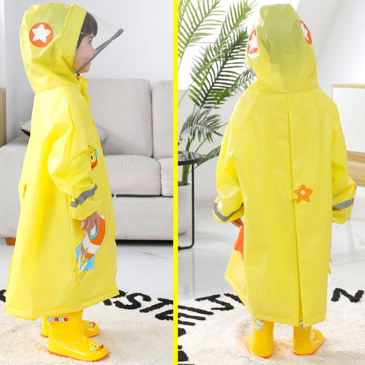 Large Hat Brim Cartoon Print Children Raincoat with Schoolbag Seat, Size: XL(Yellow)