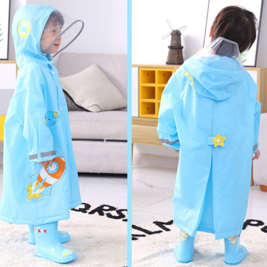 Large Hat Brim Cartoon Print Children Raincoat with Schoolbag Seat, Size: XXL(Blue)