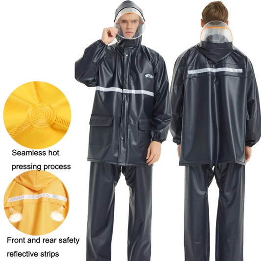 Adult Anti-Riot HD Double Brim Raincoat Rainpants Sets, Size: XL(Navy)