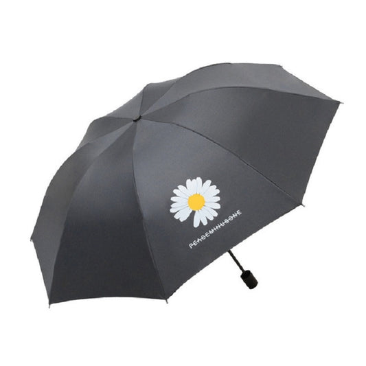 GD Daisy Vinyl Sunny And Rain Umbrella Anti-UV Shade Sunscreen Three Folding Umbrella((GD Daisy) Black automatic umbrella)