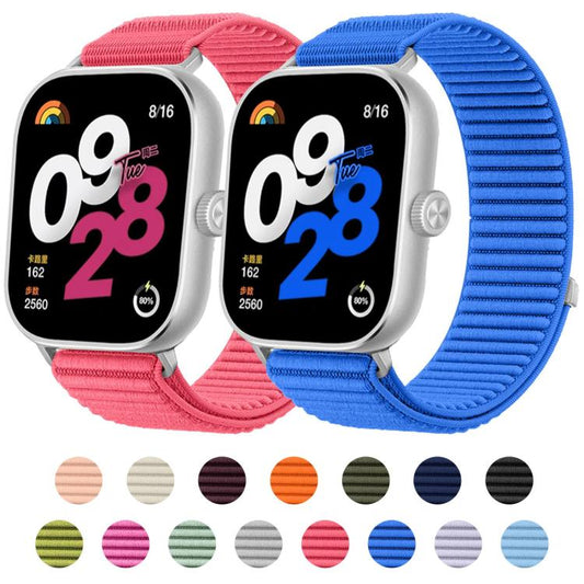 For Redmi Watch 6 / 5 / 4 Woven Nylon Hook And Loop Fastener Metal Interface Watch Band(Peony Pink)