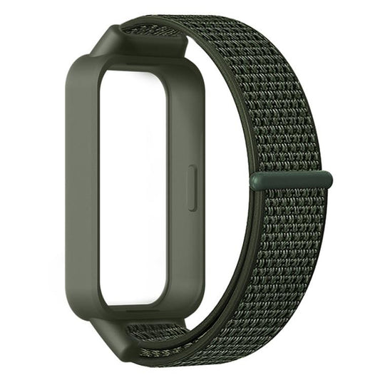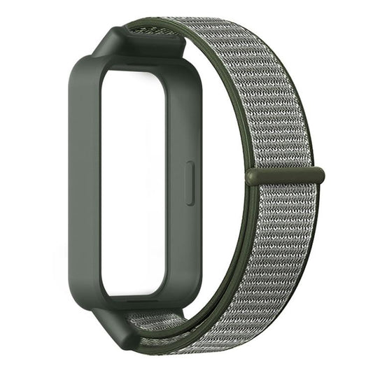 For Xiaomi Smart Band 9 Active / Redmi Band 3 xDfind Plastic Cover Integrated Nylon Loop Watch Band(Olive Green)