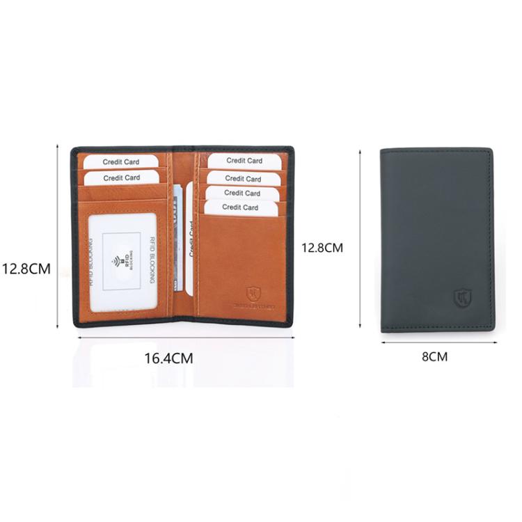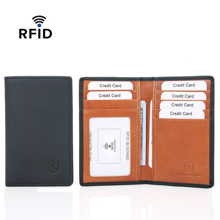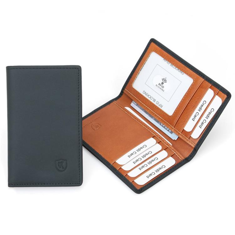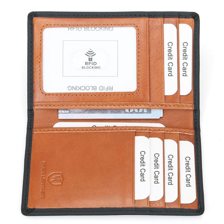 DKER LEATHER RFID Retro Color-Block 2 Fold Credit Card Wallet Leather ID Card Case(Black)