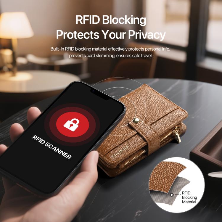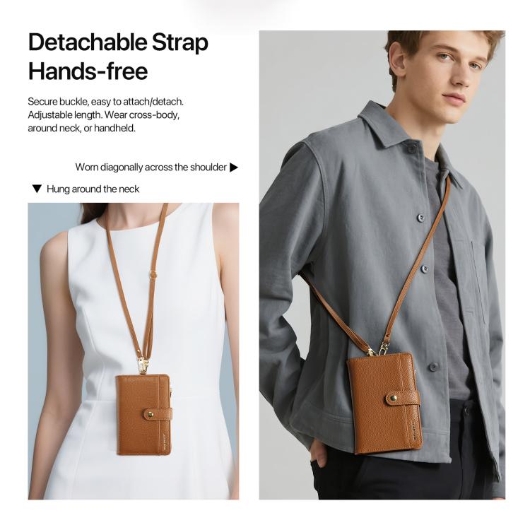 DUX DUCIS PU Leather RFID Multi-card Wallet with Lanyard(Brown)