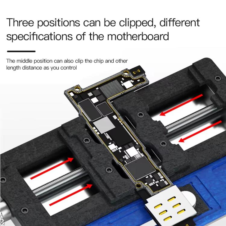 4. Three positions can clamp motherboards of different specifications, and the middle position can also clamp chips and others